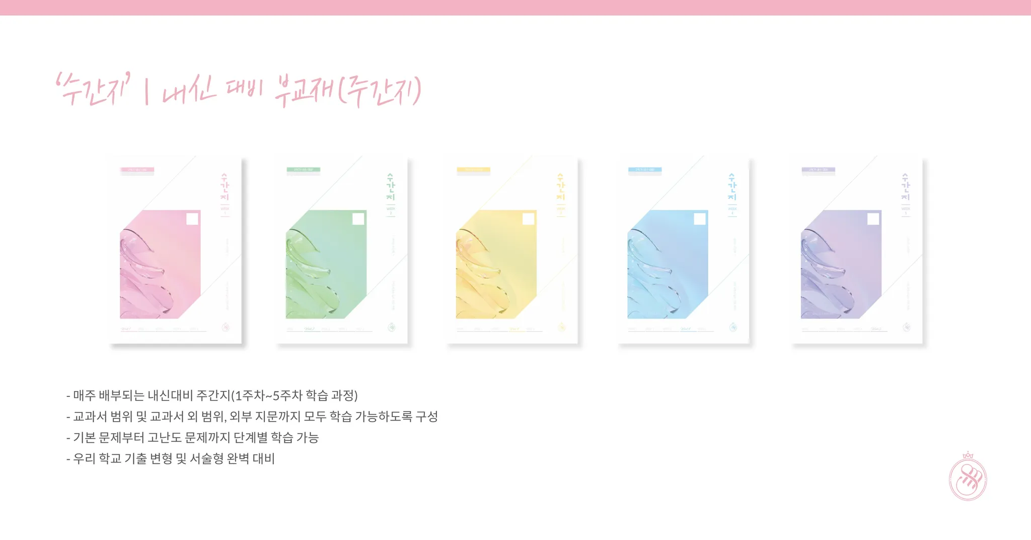 수민쌤 제자들만 누릴 수 있는 ‘우리 학교 전용’ 맞춤형 고퀄리티 자료 수업에서 끝나는 자료가 아니라, 시험 점수로 이어지도록 설계된 콘텐츠입니다.